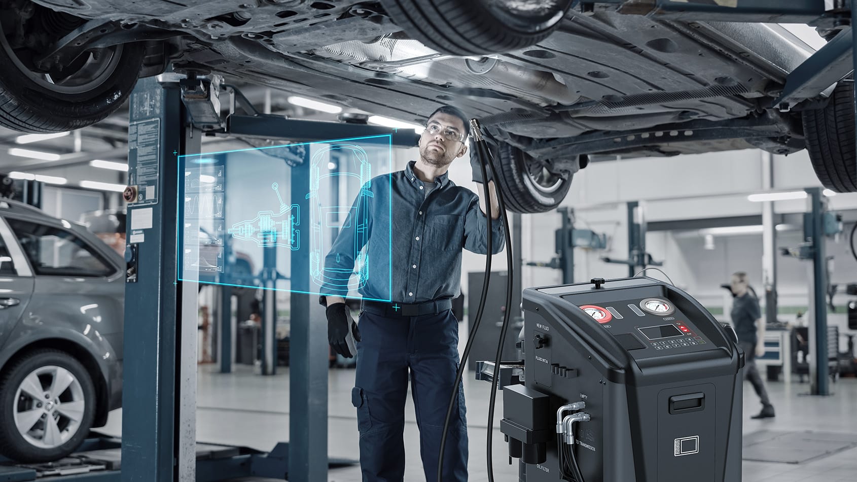 Thanks to the CAT app, the gearbox flushing device can now be controlled remotely and the flushing process can be carried out by just one person instead of two, saving time and money.